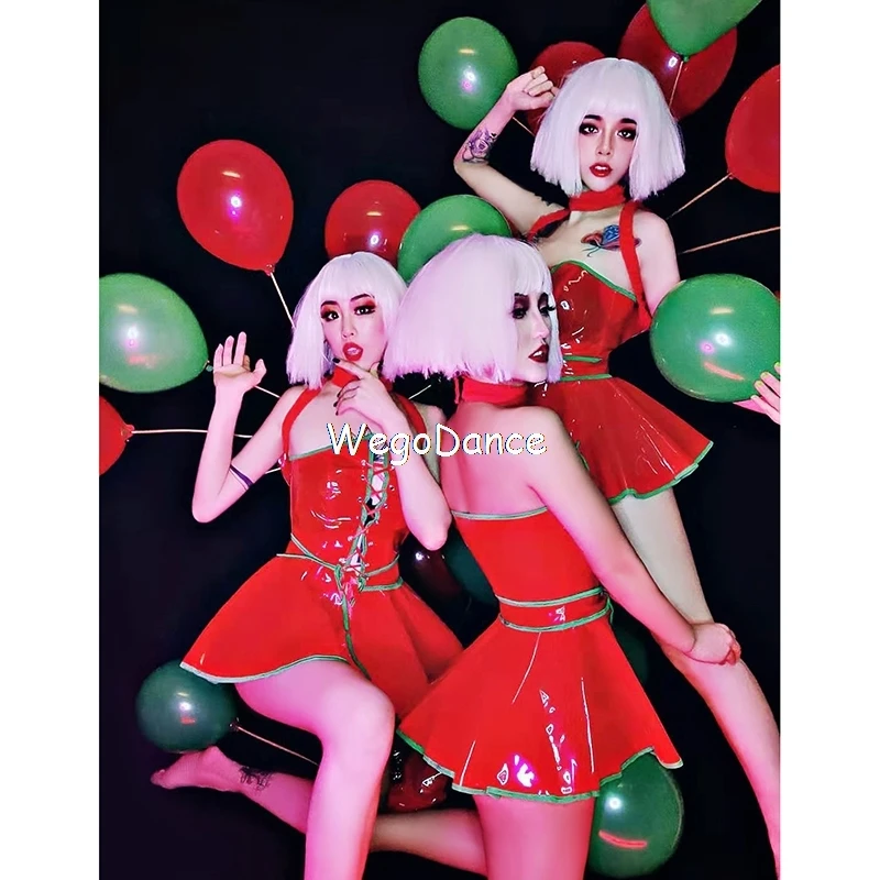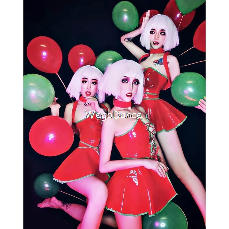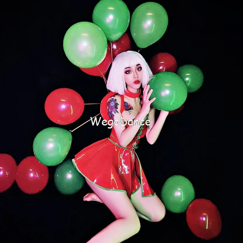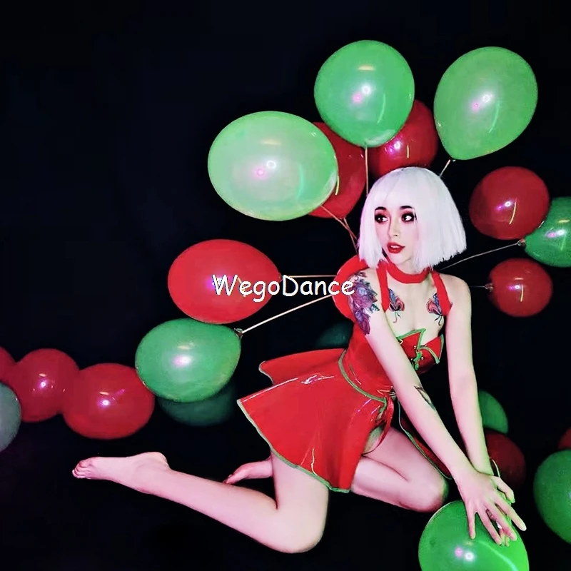Big Offer Christmas Costumes Sexy New Nightclub Bar Gogo Lead Dancer Clothing Costumes Red Balloons Catwalk