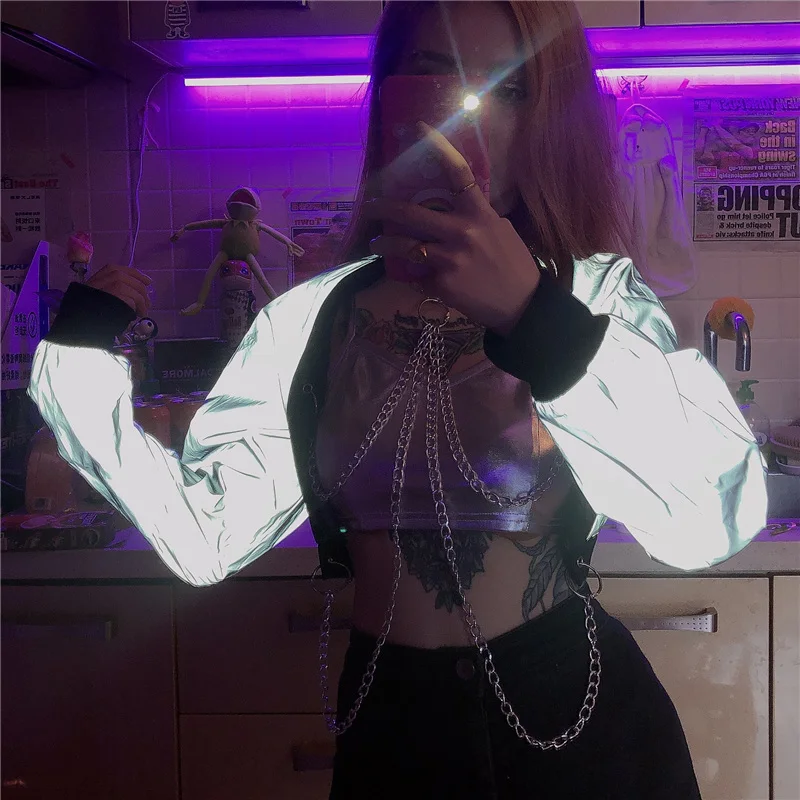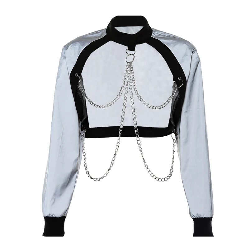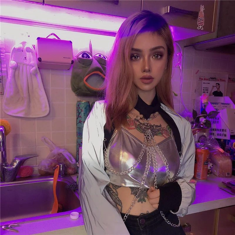 Super Deal Hip Hop Dance Silver Chain Tops Women Street Dance Performance Clothing Female Singer Jazz Dance Se