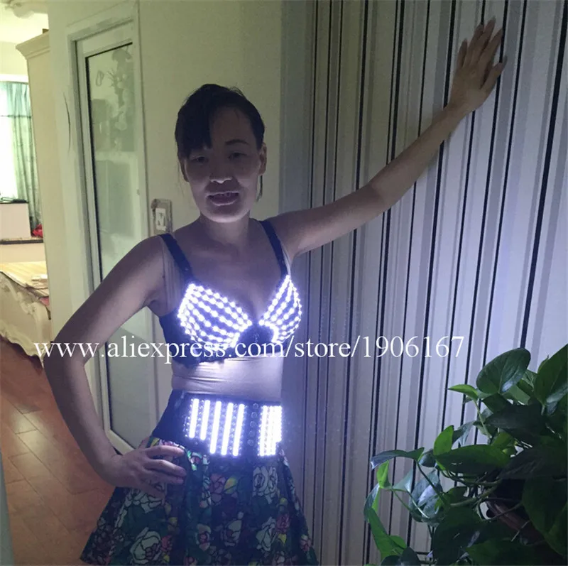 Mega Discount 2018 Fashion Luminous Sexy Lady Clothing Led Bra and Luminous Girdle For Night Club Led luminous Se